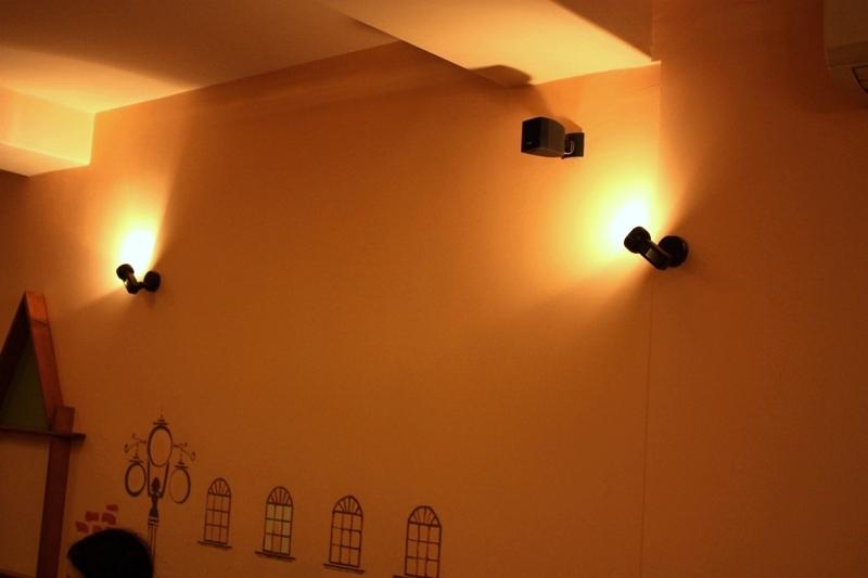 Thomas Twinning Tea House, non smokers' hall, Bose Freespace 3 business class speakers, Acoustimass Cube.